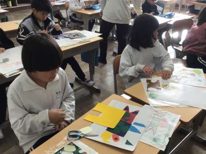2年生図工 カラー紙版画の作成