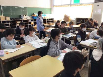 「変わり方」の学習の復習をしました。表で変わり方を調べ、それを◯や△を使った式に表すことを問題を解きながら振り返りました。