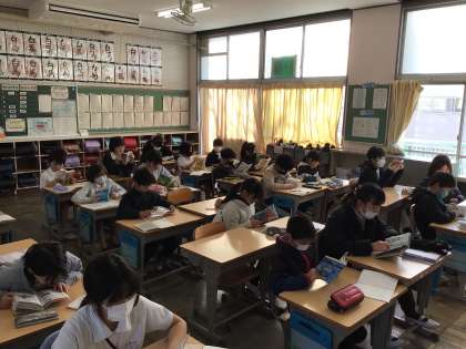 8時半になるとどの学年も静かに読書が始まりました。今日も落ち着いた雰囲気で一日が始まりました