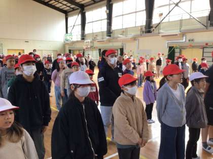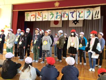 1〜5年生と6年生で言葉を贈り合いました。6年生と歌う最後の校歌にも心がこもっていました。