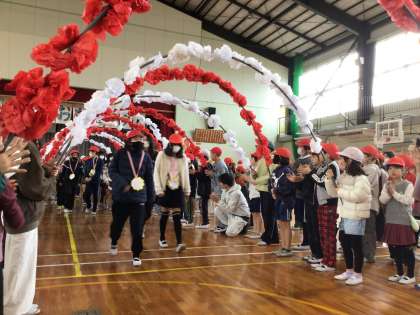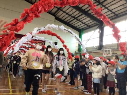 2/26 6年生を送る会6 公開日 2025/02/26 更新日 2025/02/26 特別活動 最後は、4年生が用意したアーチをくぐって6年生の退場です。体育館の飾りや招待状など、1〜5年生みんなで分担をしてつくり上げた6年生を送る会は笑顔あふれる、あたたかい会となりました。また、この会を中心になって、つくってきた5年生の頼もしい姿も見られました。