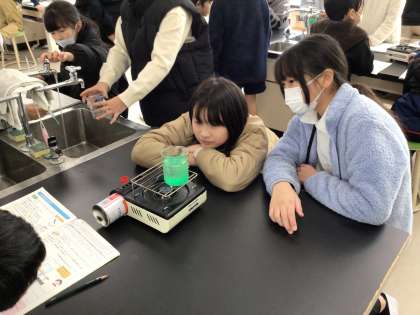 「もののあたたまり方」の学習です。今日は、水の温まり方を調べる実験をしました。ビーカーの底に落とした絵の具の動きを見ながら、温まった水がどのように動くのかを観察しました。実験の後は結果を分かりやすく理科ノートに記録することができました。
