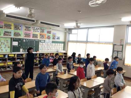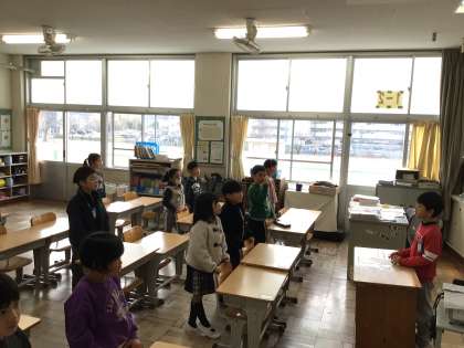 今日も気持ちの良いあいさつで朝の会が始まりました。健康観察、先生や係の連絡を聴く姿勢もよいですね。朝の歌も元気よく歌っていました。