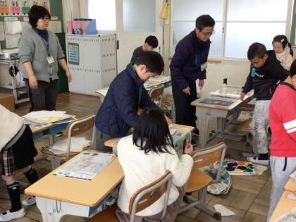 1年生図工 紙版画を刷りました