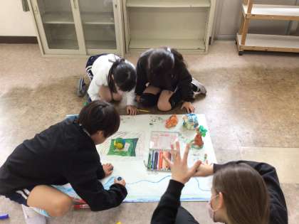 2/28 3年生図工 公開日 2025/02/28 更新日 2025/02/28 各学年から 3年生の図工では、紙粘土で自分だけの家を作りました。今日は、自分で作った家を、グループで相談して自分たちの町を作成し、家を町に置きました。楽しい町を作り上げることができました。