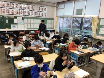 雨の朝となりましたが、元気よく登校してきました。金曜日にワックスがけを行った2、6年生教室は机や椅子を教室に戻す作業を行っていました。時間を見て朝の支度をしていました。8時半になると今週も落ち着いた雰囲気で一日がスタートできました。
