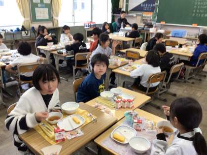 3/3 楽しい給食1 公開日 2025/03/03 更新日 2025/03/03 各学年から 今日はひなまつりにちなんだ献立です。ちらし寿司にひなあられが出ました。どの学級も楽しく会話をしながら食べていました。
