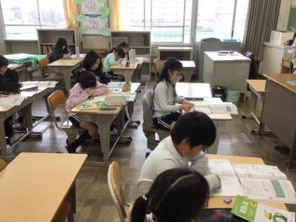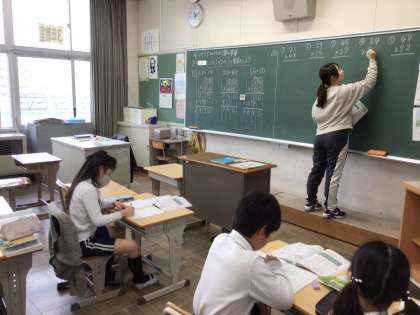 3/4 3年生算数1 公開日 2025/03/04 更新日 2025/03/04 各学年から 3年生算数では、「2桁をかけるかけ算の筆算」の学習をしています。今日は、2桁×2桁の計算練習をしました。正確に問題が解けるように練習しました。
