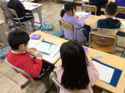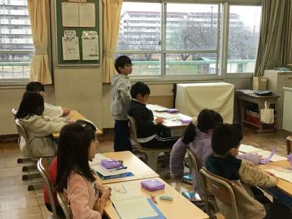 3/5 1年生算数1 公開日 2025/03/05 更新日 2025/03/05 各学年から 1年生算数では、文章問題を読んで、どんな計算になるのか考えました。多い方と少ない方の数を読み取り、多い方の数の求め方を考えました。ペアで考え、発表しました。