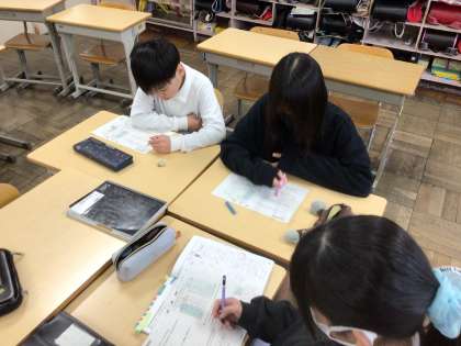 3/5 6年算数 公開日 2025/03/05 更新日 2025/03/05 各学年から 6年算数では、データの活用、場合の数あたりの復習プリントを少人数に分かれて行っていました。プリントの問題を集中して解いていました。これらの内容は中1でさらに深めていくことになります。また場合の数については中2の確率の単元につながるので必ずできるようにしておきましょう。