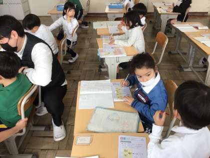 3/6 1年生国語 公開日 2025/03/06 更新日 2025/03/06 各学年から 1年生国語では、漢字を選んで組み合わせ、言葉を作り漢字ドリルに書きました。また、新しい漢字を学習し、筆順や形に気をつけて漢字ノートやドリルに丁寧に書きました。