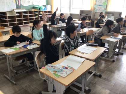 3/6 3年生算数1 公開日 2025/03/06 更新日 2025/03/06 各学年から かけ算の筆算の学習です。今日は3桁×2桁の計算の仕方について学びました。すでに習った2桁×2桁の筆算の仕方を使って解き方を理解することができました。