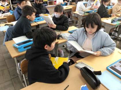 歴史ある知立市。それを守る取組について調べました。知立市の有名なかきつばたや花しょうぶは地域の方の手作業によって守られていることを知りました。調べたことを隣の友達と伝え合う時間には、お互いの話にうなずきながら聞くことができました。