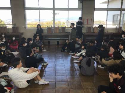 5年生の演奏や合唱を聴いた感想を伝えました。「一つの音のように、音が揃っていました」「私も5年生になったら今の5年生のように演奏できるようになりたいです」など自分が感じたことを発表しました。