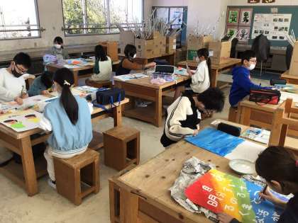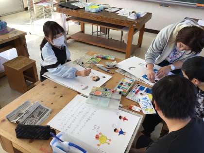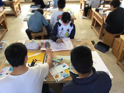 3/10 5年図工 公開日 2025/03/10 更新日 2025/03/10 各学年から 5年図工では、前回に引き続き「高橋あいさつ運動」のポスター作りを進めていました。ことばの部分がわかりやすくなるような配色を考えながら、色を絵の具で塗っていました。