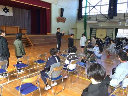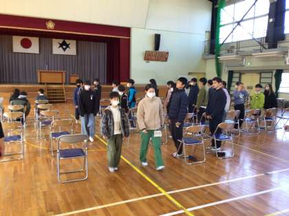 3/10 6年式練習1 公開日 2025/03/10 更新日 2025/03/10 各学年から 6年生は2限体育館で式練習を行いました。入退場の仕方について説明を聞き、実際に入退場を行ってみました。等間隔で入退場するのが難しく、何度も練習をしていました。