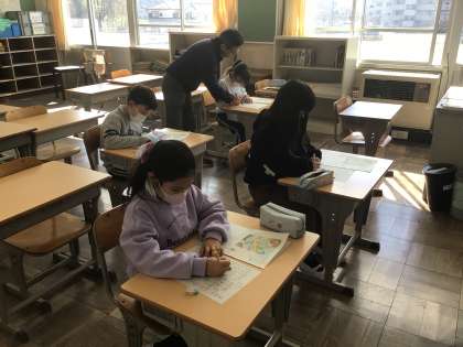 これまで習った漢字の学習をしました。分からない漢字は自分で調べながら問題を解きました。漢字の形に気をつけて丁寧に書くことができました。