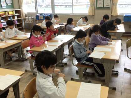 3/11 1年生国語1 公開日 2025/03/11 更新日 2025/03/11 各学年から 1年生の国語では、「1年間の思い出ブック」を作っています。作文用紙に文章を書き始めました。楽しかったことや、学校行事のこと、学級の係活動のことなど、自分で考えて書くことができました。