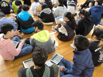 3/13 6年外国語 公開日 2025/03/13 更新日 2025/03/13 各学年から 6年外国語では、1、2組合同でALTの先生と共に学習をしていました。今日のめあては「今まで習ったことを使ってBINGOをしよう」です。タブレットに誕生日、好きなスポーツなど質問に対する答えを入力してBINGOの準備をしていました。