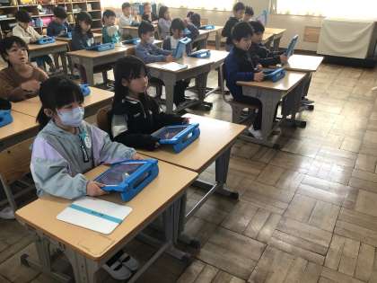 学習用タブレットの整理をしました。必要のないデータやアプリを消去しました。先生の話をよく聞いて正しくタブレットの操作をすることができました。