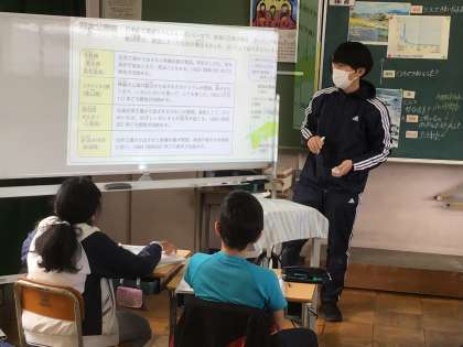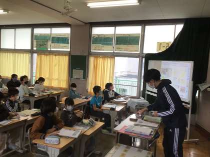 5年社会では、公害について学習をしていました。先生の説明に対してよく反応をしていたのがとても印象的です。
