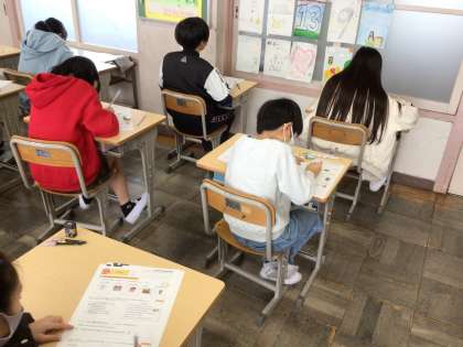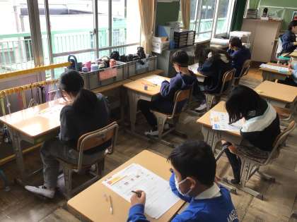 5年外国語では、ユニット8の単元テストを実施していました。リスニング問題もあり、真剣に取り組んでいました。