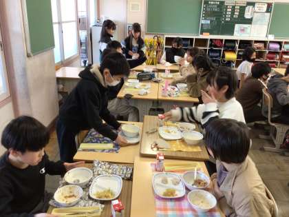 どの学級も友達との会話を大切にしながら会食を楽しんでいました。学級の仲間との思い出が一つ増えますね。