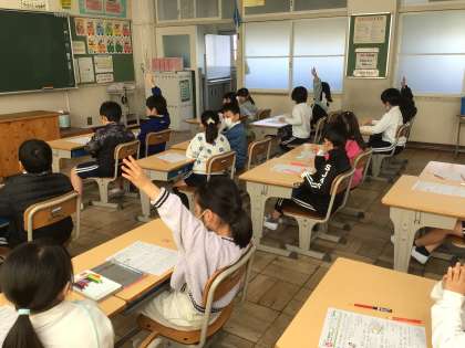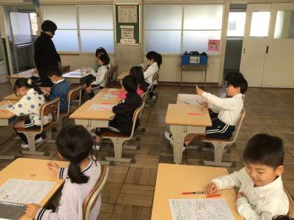 3/18 1年生算数 公開日 2025/03/18 更新日 2025/03/18 各学年から 1年生算数では、1年間のまとめの学習しました。たし算、ひき算の文章問題を読んで、式を考え求めました。考えた意見を発表することができました。