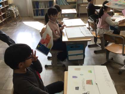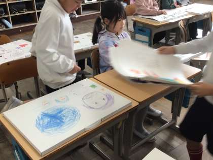 2年生図工のまとめで、作品バックに自分の作品を入れたり、整理整頓したりしました。作品バックには、自分で描いたイラストや、言葉が書いてあります。2年生の思い出いっぱいの宝物になりました。
