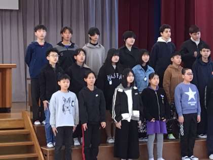 3/18 6年式練習3 公開日 2025/03/18 更新日 2025/03/18 各学年から 歌練習では、音楽の先生から最後のアドバイスをいただき、心を込めて歌っていました。体育館後方で歌声を聴きながらじっと見守る担任の姿も印象的でした。