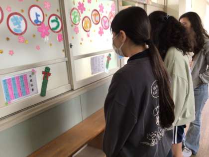 ちょこっとボランティアさんの素敵な卒業祝いメッセージ付き掲示物が国際教室の廊下に飾られています。廊下を通る子供達や先生方が足を止めて見てくださっています。6年生の子供たちもうれしそうです。こうした温かい励ましが子供の心の見えない支えになっていくんだなあとしみじみ思いました。