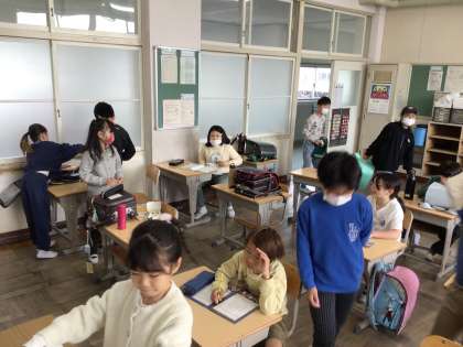 今年度最終日元気よく登校してきました。朝の支度をしながらも、友達と談笑する姿がたくさん見られました。