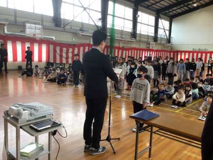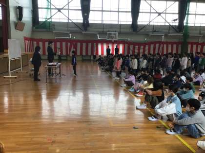 体育館で修了式を行いました。どの学年も校長先生から修了認定をしていただきました。学年の締めくくりにふさわしい「気をつけ」や「礼」ができました。