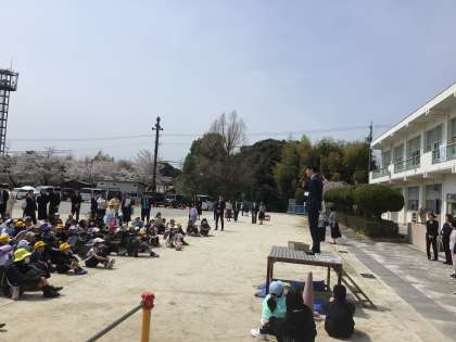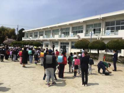 今年度最初の下校は1年生にも通学路を覚えてもらうために、保護者同伴で一斉下校をしました。学級開きの後、運動場に通学団ごとに整列しました。下校する前に今年度新たに平井小学校に赴任された先生方の自己紹介も行いました。
