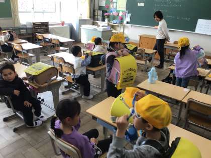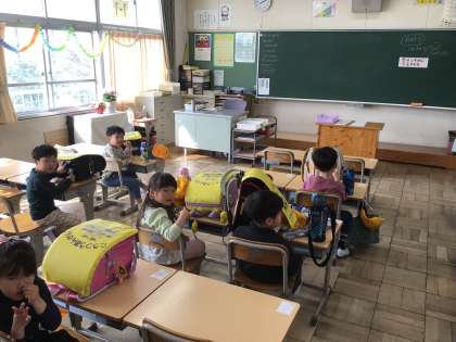今日も元気よく登校してきました。1年生は登校してら静かに教室で座って待っていました。今日が3日目になりますが、緊張した表情も見られました。「おはようございます」と声をかけると元気よくあいさつをしてくれました。