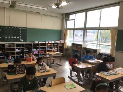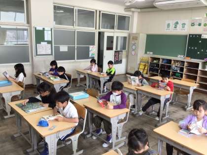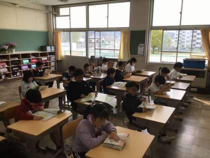 どの学年も今年度初めてのかがやきの時間ですが、落ち着いた雰囲気で読書ができています。
