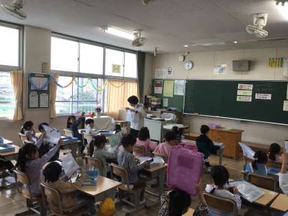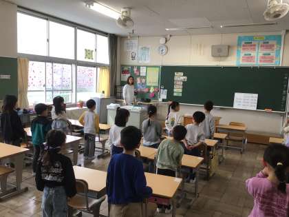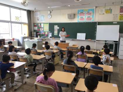 1年生の朝の会では、荷物の片付け方を確認したりするなど、先生の話をしっかり聞いて進めていました。子ども園とは異なることが多いと思いますが、少しずつ慣れていくと思います。