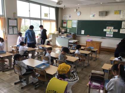 4/14 朝のひととき 公開日 2025/04/14 更新日 2025/04/14 各学年から 週明け気持ちよく晴れた朝、元気よく登校してきました。1年生の教室では、6年生が朝の支度のサポートに来ていました。