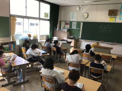 8時25分になると静かに読書が始まりました。新しい学級でも落ち着いた雰囲気で一日がスタートできました。