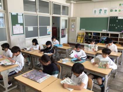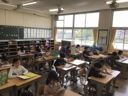 どの学年も時間になると静かに読書が始まります。時間を意識して行動ができるのは素晴らしいことですね。