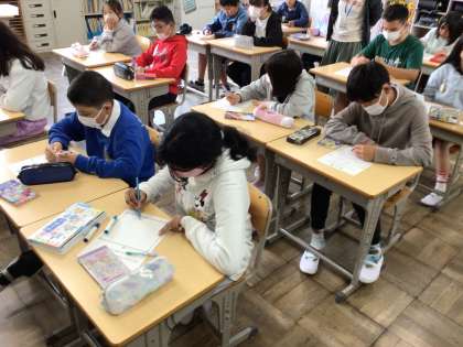 4/15 6年図工 公開日 2025/04/15 更新日 2025/04/15 各学年から 6年図工では、「音の絵」という作品をつくっていきます。音からイメージして色や形を考えて作品をつくっていくようです。今日は初回で練習を兼ねていくつかの音を聴き、ワークシートに音からイメージした形や絵を描いていました。