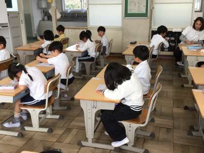 4/15 1年生国語1 公開日 2025/04/15 更新日 2025/04/15 各学年から 1年生国語では、自分の名前を書いたり、好きな物の絵を描いたりしました。描いた絵を色鉛筆で色塗りもしました。