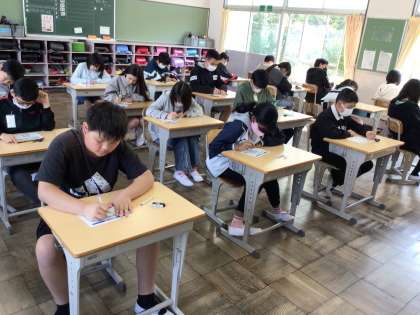 4/17 全国学力・学習状況調査1 公開日 2025/04/17 更新日 2025/04/17 各学年から 6年生は全国学力・学習状況調査の実施日です。したがって3限終わりまでは他学年と別日課で実施します。朝の会で健康観察と諸連絡を行ったあと、全国学力・学習状況調査の実施の流れの説明を受けました。答案番号シール票が一人一人配られ、書き方の説明を聞きながら丁寧に記入をしていました。