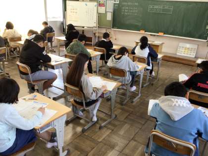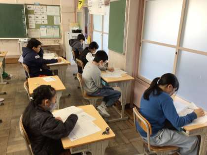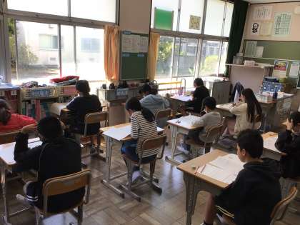 2限は算数です。1限国語と同様、解答用紙にすばやくシールを貼って準備ができました。問題文をしっかり読みながら解き進めていました。