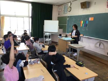 4/17 5年図工 公開日 2025/04/17 更新日 2025/04/17 各学年から 5年図工では、「心のもよう」という作品をつくっていきます。作品をつくるにあたり、色のイメージについて説明をしていました。暖色、寒色、中性色の説明について説明を聞いていました。