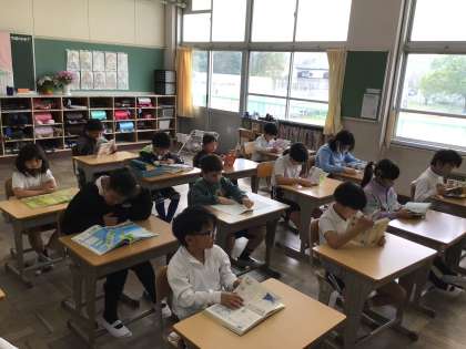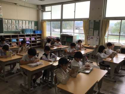 よい姿勢で本を読んでいます。活字に触れる時間を大切にしていきたいですね。