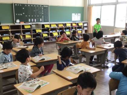 4/21 1年生国語2 公開日 2025/04/21 更新日 2025/04/21 各学年から 1年生国語で、学校生活の中の場面で、友だちが「なんていうのか」を考えました。絵を見て、「かして」て言ってるよ。「おはよう」って言ってる等意見を発表しました。
