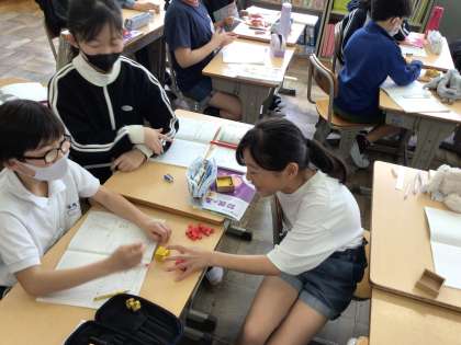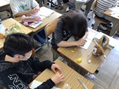 4/21 5年算数2 公開日 2025/04/21 更新日 2025/04/21 各学年から 少人数授業のときは、教室の他に4年教室を使って学習を進めていきます。立方体のブロックを使ってかさ比べを行っていました。