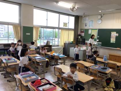 雨降りの朝となりましたが、元気よく登校してきました。1年生は朝の準備がだんだん慣れてきたようではやくなってきました。6年生が見守る中、できることが日々増えていくのでこれからも楽しみです。