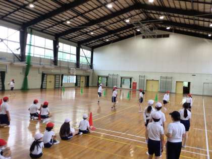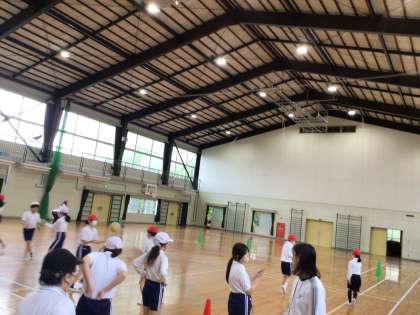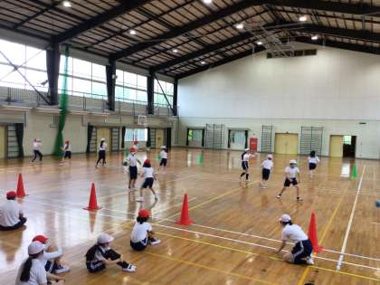 4/23 6年体育2 公開日 2025/04/23 更新日 2025/04/23 各学年から 今日の体育の様子です。はやくゴールできたグループは、他のグループを応援するなど、温かい雰囲気も感じられました。